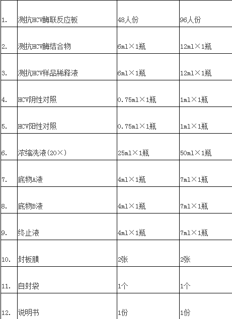 【药品名称】丙型肝炎病毒抗体(HCV)ELISA检测试剂盒