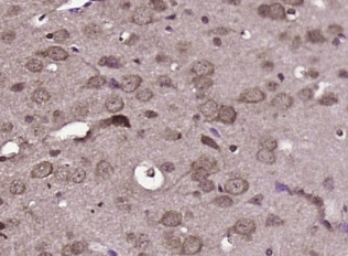 多聚甲醛固定,石蜡包埋(小鼠脑);用柠檬酸钠缓冲液(pH6.0)煮沸15min;用3%过氧化氢阻断内源性过氧化物酶20分钟;阻断缓冲液(正常山羊血清)37℃30min;抗体(AXIN 2)多克隆抗体在1:400过量下孵育。在4°C温度下进行高温处理,随后进行20分钟的结合二级抗体和DAB染色。