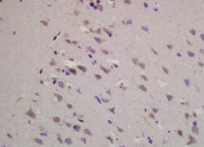 多聚甲醛固定,石蜡包埋(大鼠脑组织);用柠檬酸钠缓冲液(pH6.0)煮沸15min后提取抗原;用3%过氧化氢阻断内源过氧化物酶20分钟;阻断缓冲液(正常山羊血清)37℃30min;用BaCe1多克隆抗体进行抗体孵育Nal抗体,未结合,1:400,4°C下过夜,然后结合二级20分钟,DAB染色。